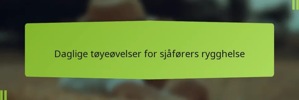 Langvarig sitting og dårlig holdning kan føre til ulike ryggproblemer for sjåfører, inkludert smerter i korsryggen og muskelstivhet. Å implementere daglige tøyeøvelser kan betydelig forbedre rygghelsen ved å lindre spenninger og øke fleksibiliteten. Ved å dedikere bare noen få minutter hver dag til effektive tøyninger, kan sjåfører redusere ubehag og fremme generell velvære på veien. …