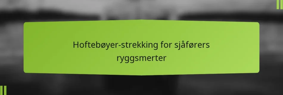 For sjåfører kan langvarig sitting føre til stramme hoftebøyere, som i stor grad bidrar til smerter i korsryggen. Å inkludere tøyning av hoftebøyere i rutinen din kan lindre ubehag ved å forbedre fleksibiliteten og redusere spenningen i hofteområdet. Denne enkle praksisen er essensiell for å øke den generelle komforten under lange kjøreturer. Key sections in …