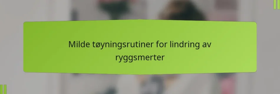 Milde tøyningsrutiner for lindring av ryggsmerter er utformet for å forbedre fleksibilitet og lindre spenninger i ryggmusklene. Ved å inkludere spesifikke bevegelser kan disse rutinene betydelig redusere ubehag og forbedre generell mobilitet, noe som gjør dem til en viktig del av håndteringen av ryggsmerter. Key sections in the article: Toggle Hva er milde tøyningsrutiner for …