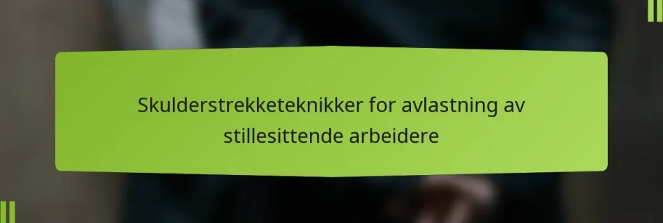 For stillesittende arbeidere er det viktig å inkludere skulderstrekketeknikker i den daglige rutinen for å lindre spenninger og øke fleksibiliteten. Disse strekkene kan bidra til å motvirke ubehaget som følger med langvarig sitting, og fremme bedre holdning og generell skulderhelse. Ved å dedikere bare noen få minutter hver time til disse øvelsene, kan du betydelig …