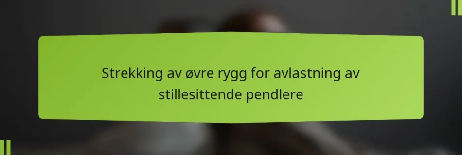 Pendler opplever ofte ryggsmerter på grunn av langvarig sitting og dårlig holdning, noe som kan føre til muskelbelastning og ubehag. Å inkludere effektive tøyningsteknikker i din daglige rutine kan lindre spenninger og forbedre fleksibiliteten, noe som gjør pendlingen mer komfortabel. Ved å følge trygge tøyningspraksiser og lytte til kroppen din, kan du betydelig redusere smerte …