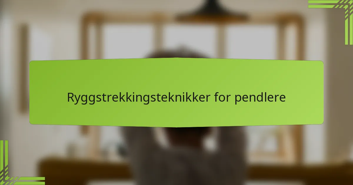 Effektive tøyningsteknikker for pendlere fokuserer på å lindre spenning og forbedre fleksibilitet, spesielt for de som tilbringer lange timer sittende eller stående. Å inkludere ryggtøyninger i din daglige rutine kan hjelpe med å redusere smerte og ubehag, noe som gjør pendlingen mer utholdelig.