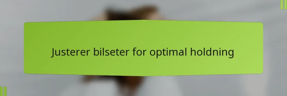 For å oppnå optimal holdning bør sjåfører justere setet slik at de komfortabelt kan nå pedalene uten å strekke seg. Ryggstøtten bør støtte den naturlige kurven i ryggraden, og setehøyden bør tillate en klar utsikt over veien samtidig som knærne holdes lett bøyd.