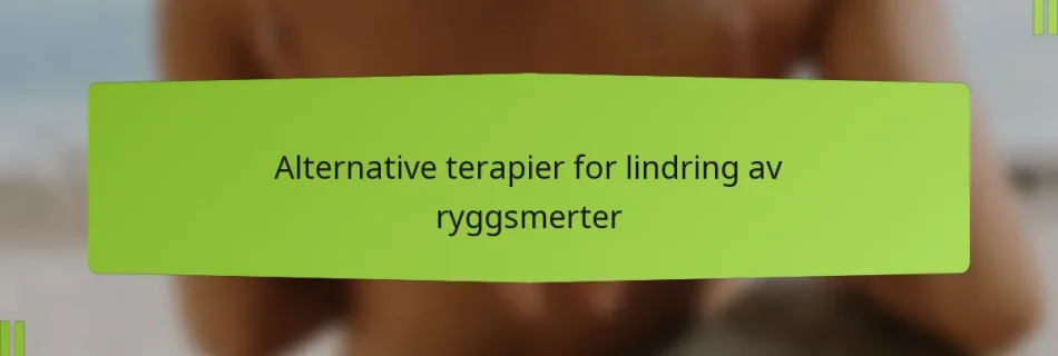Alternative terapier som akupunktur, kiropraktisk behandling og massasjeterapi kan gi effektiv lindring for ryggsmerter. Disse tilnærmingene fokuserer ofte på helhetlig behandling og kan supplere tradisjonelle medisinske inngrep.