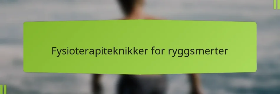 Fysioterapiteknikker for lindring av ryggsmerter involverer ofte øvelser designet for å styrke ryggen og forbedre fleksibiliteten. Terapeuter kan bruke manuell terapi, tøyning og spesifikke styrkeøvelser tilpasset pasientens tilstand. Regelmessige økter kan føre til betydelige forbedringer i smertenivåer og funksjonsevne.