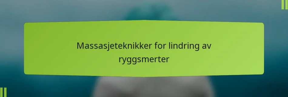 Massasjeterapi kan bidra til å lindre spenninger og forbedre sirkulasjonen i ryggmusklene. Teknikker som dypvevsmassasje eller triggerpunktterapi kan målrette spesifikke områder med ubehag, fremme avslapning og redusere smerte. Mange mennesker opplever at regelmessige massasjesesjoner bidrar til deres overordnede strategi for håndtering av ryggsmerter.