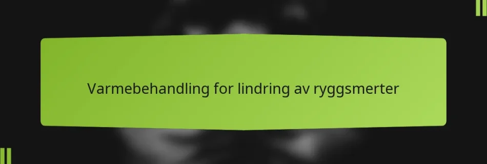 Varmebehandling for lindring av ryggsmerter er en effektiv metode som innebærer å påføre varme på det berørte området for å lindre ubehag og fremme helbredelse. Ved å øke blodstrømmen og slappe av musklene, bidrar denne tilnærmingen ikke bare til å lindre smerte, men også til å forbedre fleksibilitet og redusere stivhet, noe som bidrar til …