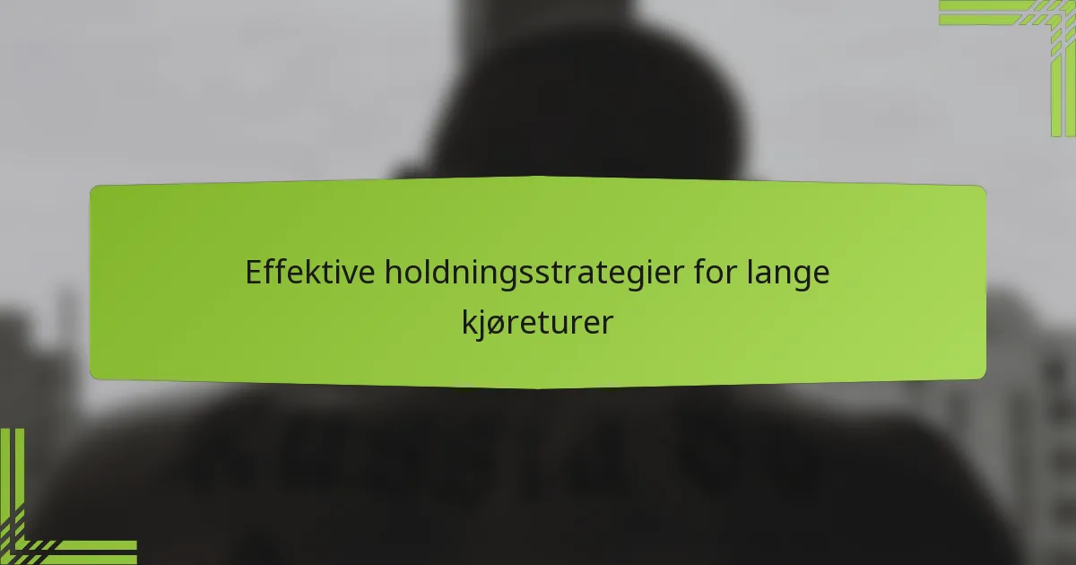 Langkjøringer kan belaste kroppen din, men effektive holdningsstrategier kan bidra til å opprettholde komfort og redusere tretthet. Ved å gjøre riktige justeringer av setet, rattet og speilene, samt være oppmerksom på posisjonen til knærne og hoftene, kan du betydelig forbedre kjøreopplevelsen din. Å inkludere regelmessig stretching og bruke ergonomiske produkter kan ytterligere fremme komfort og forhindre ubehag på veien.