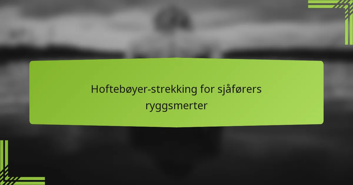 Stramme hoftebøyere er et vanlig problem for sjåfører, ettersom de forblir i en forkortet posisjon mens de sitter. Denne stramheten kan trekke i bekkenet, noe som fører til en fremoverbøyd bekkenvinkel, som øker belastningen på korsryggen. Å ta tak i stramme hoftebøyere gjennom tøyning er essensielt for å lindre ryggsmerter.