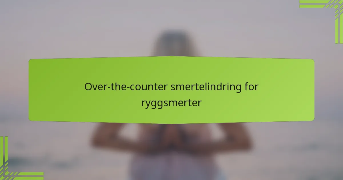 Reseptfrie (OTC) smertelindrende alternativer, inkludert ibuprofen, paracetamol og naproxen, kan gi effektiv lindring for ryggsmerter ved å redusere betennelse og ubehag. Det er viktig å følge anbefalte doser og vurdere individuelle helsefaktorer for å sikre trygg og effektiv bruk. Å være klar over potensielle bivirkninger og interaksjoner kan ytterligere forbedre smertelindringsstrategier.