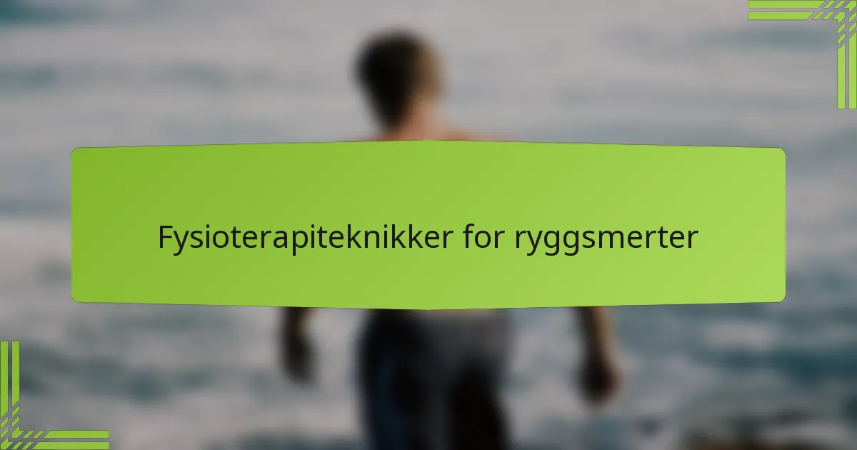 Hva er de primære fysioterapiteknikkene for ryggsmerter?