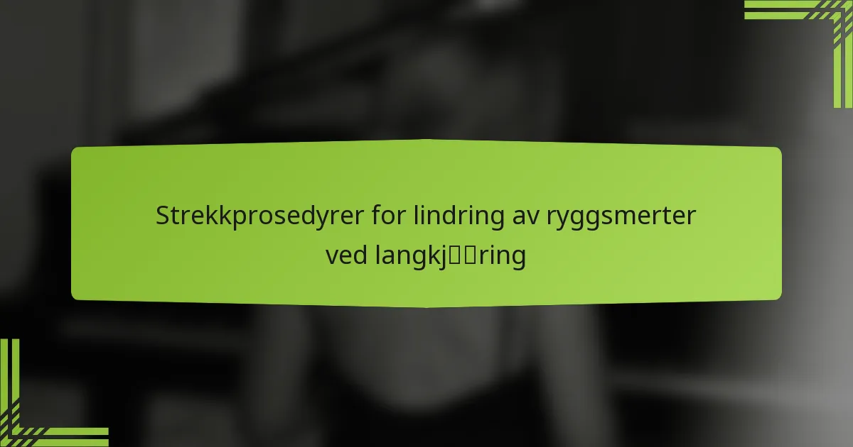 Den optimale tøyeprosedyrer for langkjøring involverer en kombinasjon av tøyningsteknikker før, under og etter kjøring, designet for å lindre ryggsmerter og forbedre komfort. Implementering av disse rutinene kan forbedre fleksibilitet, redusere muskelspenning og fremme bedre sirkulasjon under langvarig sitting.